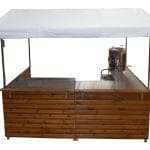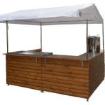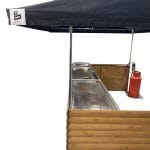 Our most popular size is the XLarge Hut, which is a 10′ x 10′ square with a 2′ overhang for customers. In the pictures, it has a Parry PGF1000 a Parry double burner and also a Parry LPG water boiler. Pictured is a single bowl sink with waste, we can also supply a double sink with our huts.