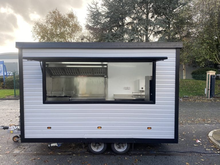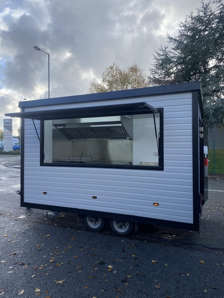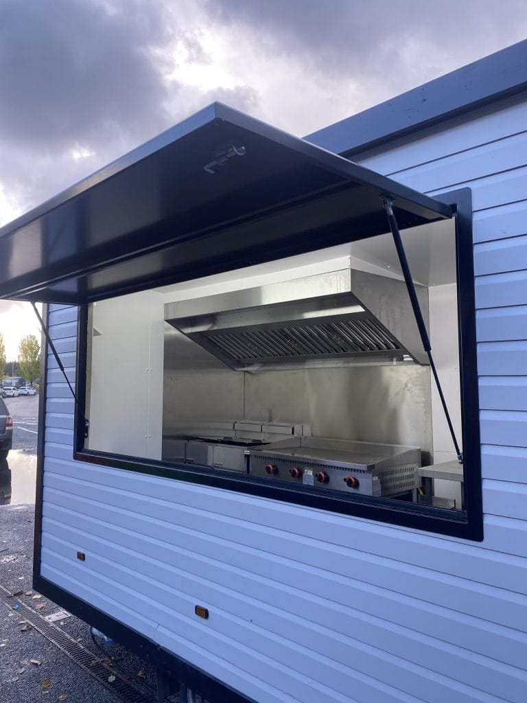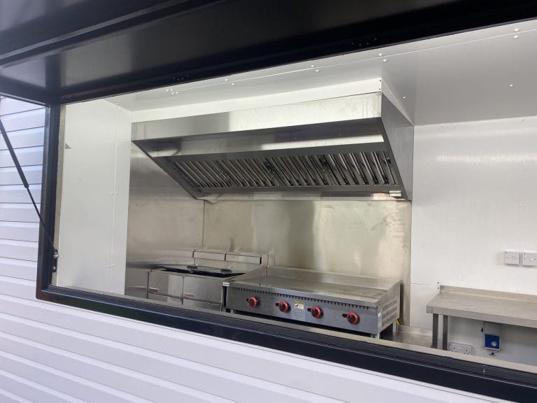 This Catering trailer is complete with two twin fast fry fryers , large hotplate , extraction and perfect for Burgers, dirty fries or as a mobile chicken shop!