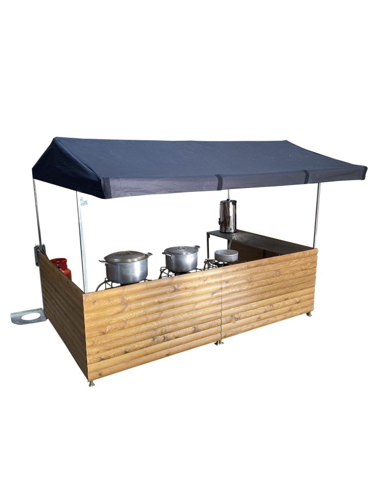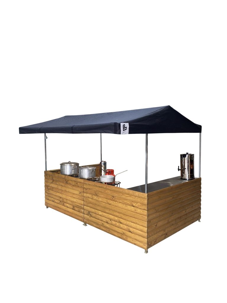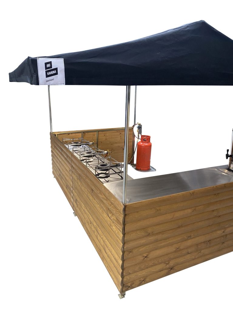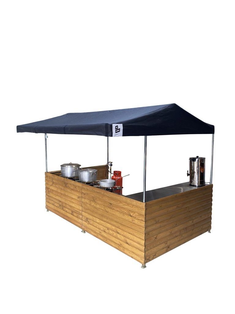 Our Large Curry Street Food Gazebo is perfect for 2 people to serve or cook food from. With its robust and wind resistant qualities can be used indoors or out. The units are perfect for product promotion or any other market stall use available for short and long term hire.