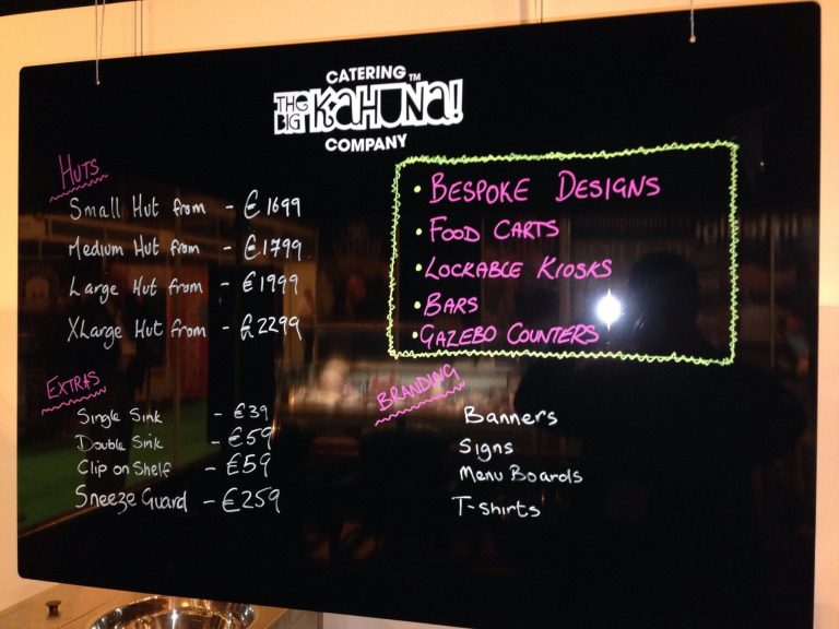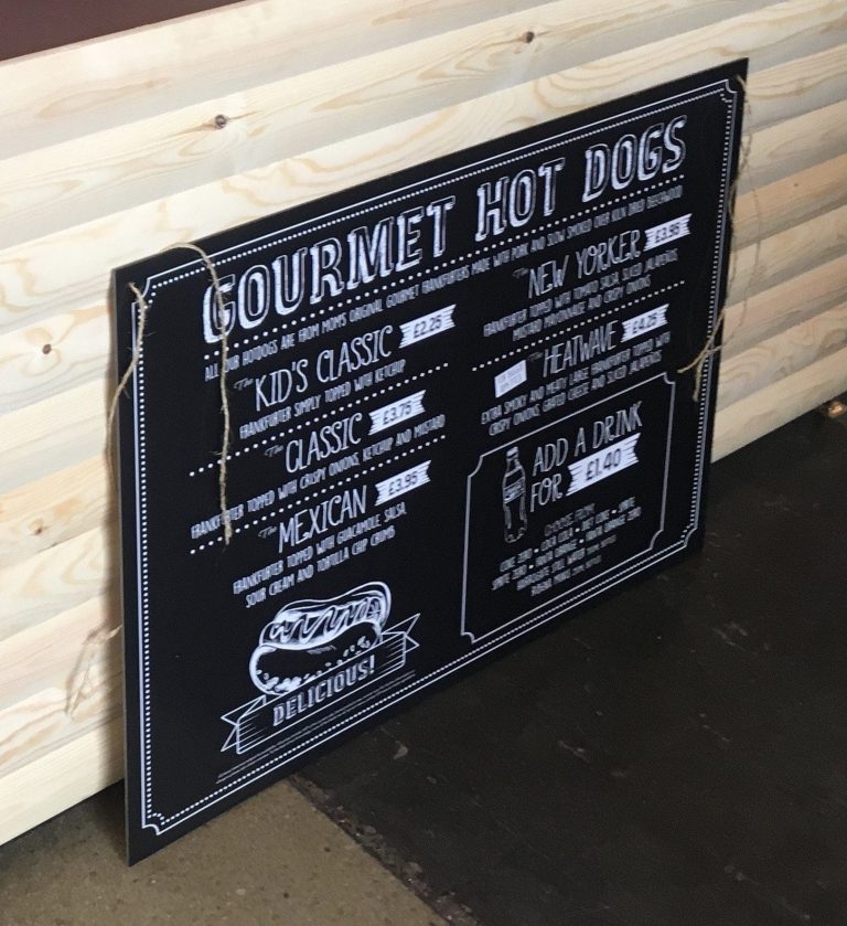 Wipeable Gloss finish Menu Board – Normally hung from the roof bars by either string or S hooks. You can have fully printed or just with your brand on.